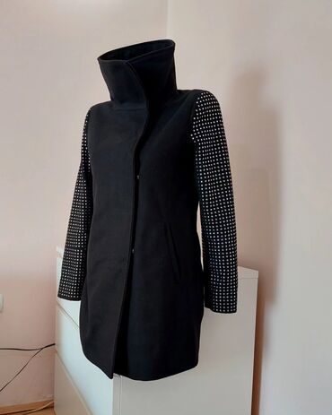 Ženska asimetrična kaput-jakna, svetlosive boje sa kontrastnim crnim detaljima. - Kroj: moderan, ravna silueta sa asimetričnim preklopom. - Kragna: široka „shawl“ kragna koja se može oblikovati. -...