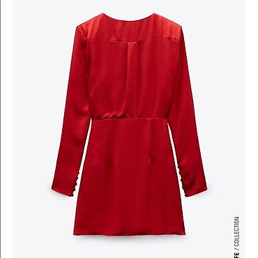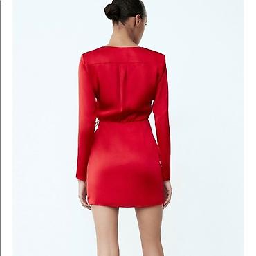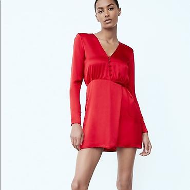 Crvena satenska mini haljina/romper sa dugim rukavima