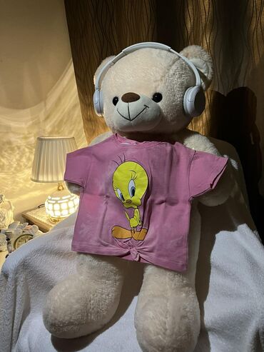 - Bela majica sa printom slatkog zeka/medvedića i natpisom “Lovely Girls”. Dugi rukavi, lagan i prijatan materijal.