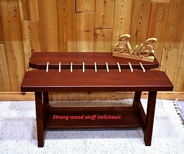 Napomena: Na fotografijama je prikazan model sa ukrasnim drvenim logotipom i natpisom “Strong wood stuff Velickovic” (ne uključuje dodatke osim same klupe/stola).