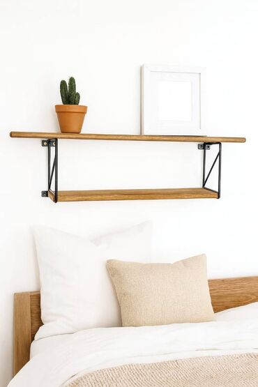 Zidna polica minimalističkog dizajna, idealna za organizaciju prostora. Izrađena od drveta prirodne boje i mat crnog metala, pruža moderan izgled. Dva nivoa za odlaganje omogućavaju efikasno iskorišćenje prostora, a čvrsta konstrukcija obezbeđuje stabilnost. Polica je pogodna za različite prostorije, od spavaće sobe do dnevnog boravka, pružajući funkcionalnost i estetski doprinos ambijentu.