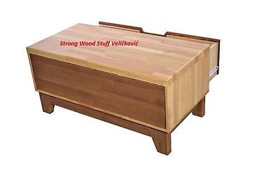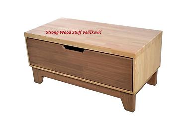 Kompaktan drveni klub sto sa jednom fiokom, idealan za dnevne sobe ili manje prostore. Izrađen od kombinacije svetlog i tamnijeg drveta, pruža moderan i topao izgled. Fioka omogućava praktično odlaganje sitnica, održavajući prostor urednim. Dizajniran je sa čvrstim nogama koje obezbeđuju stabilnost i dugotrajnost. Idealan je kao centralni element u dnevnom boravku ili kao dopuna postojećem nameštaju.