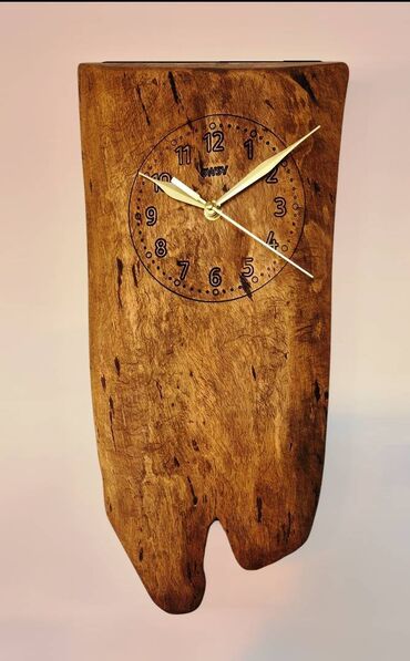 Zidni sat izrađen od punog drveta nepravilnog oblika, sa vidljivim godovima koji ističu prirodnu teksturu. Na drvenoj površini su ugravirani brojevi od 1 do 12 koji služe kao oznake za sate, dok se na sredini sata nalazi logo "SWNN". Kazaljke za sate, minute i sekunde su metalne i zlatne boje, što doprinosi elegantnom izgledu. Ovaj sat je idealan za dekoraciju enterijera, unoseći rustičan i prirodan dodir u prostor, pogodan za domove, kancelarije ili vikendice. Odlično se uklapa u različite stilove uređenja, od modernih do tradicionalnih.
