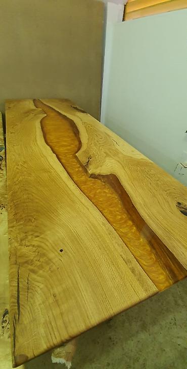 Ploča stola napravljena od drveta hrasta u kombinaciji sa epoxy smolom je remek delo koje će sigurno privući pažnju svakoga ko uđe u prostoriju. Ova jedinstvena kombinacija prirodnog drvenog izgleda i sjaja epoksidne smole pruža nekoliko zapanjujućih karakteristika: