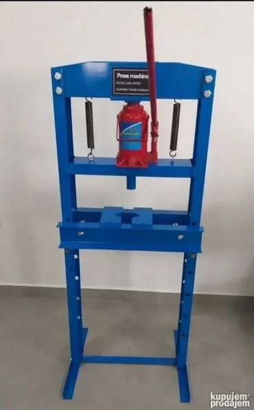 Хидраулична преса 20 тона – Ваш идеалан алат за избијање лежајева! ? ? Карактеристике: Максимални притисак компресије : 20 тона – Обезбеђује изузетну снагу за разне радне задатке, укључујући избијање лежајева, савијање и поравнање. Параметри производа : Димензије (Ш / В / Д) : приближно 63 / 150 / 60 см – Компактна величина која се лако уклапа у радни простор Нето тежина : приближно 70 кг – Чврста конструкција за стабилност и издржљивост Радна висина : подесива од 0 до 87 см – Флексибилност у раду са различитим величинама материјала Радна ширина : 55 см – Пружа простор за обраду већих делова Прецизно усмеравање : Обезбеђује тачно позиционирање делова за оптималне резултате. Хидраулична пумпа : Обезбеђује лако и ефикасно коришћење пресе, смањујући напор приликом рада. Пodesива радна висина : Омогућава прилагођавање за различите задатке и лакши приступ радној површини. Идеално за : ✔️ Избијање и уградњу лежајева✔️ Савијање и поравнање метала✔️ Разне хидрауличне примене у радионицама и индустрији