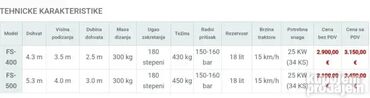 HIDRAULIČNI UTOVARIVAČ STAJNJAKA - GRAJFER "DELJANIN"Utovarivač za stajnjak je višenamenski uređaj namenjen za utovar stajskog đubriva, rasutih tereta, drva, i drugih materijala, kao i za kopanje kanala na poljoprivrednim gazdinstvima. Ovaj hidraulični utovarivač pruža efikasan način za obavljanje različitih zadataka na farmi, sa dodatnom opremom koja proširuje njegove funkcionalnosti. Dodatna oprema: Kašika za rasute terete: 500,00 € Kašika za kopanje: 450,00 € Pumpa: Pumpa sa multiplikatorom: Obezbeđuje efikasno hidrauličko napajanje. Nezavisne stope: Svaka stopa ima svoj hidraulični klip, što omogućava stabilnost i sigurnost prilikom rada. Uputstvo za rad: Pre početka rada, neophodno je proveriti nivo ulja u rezervoaru i podmazati sve pokretne delove utovarivača. Aktiviranje utovarivača započinje uključivanjem kardanskog vratila preko ručice na traktoru, čime se pokreće hidraulična pumpa utovarivača FS-400. Postavljanje: Spustite stope na čvrstu podlogu kako biste osigurali stabilnost. Bezbednost: Osigurajte da se sve osobe udalje na bezbedno rastojanje pre početka rada. Zagrevanje: Pre prvog zahvatanja tereta, hidrauličnu pumpu treba pokrenuti na 5-10 minuta da bi se postigla radna temperatura. Provera: Pokrenite sve radne položaje utovarivača na prazno, koristeći ručice razvodnika, kako biste osigurali da je uređaj spreman za rad.
