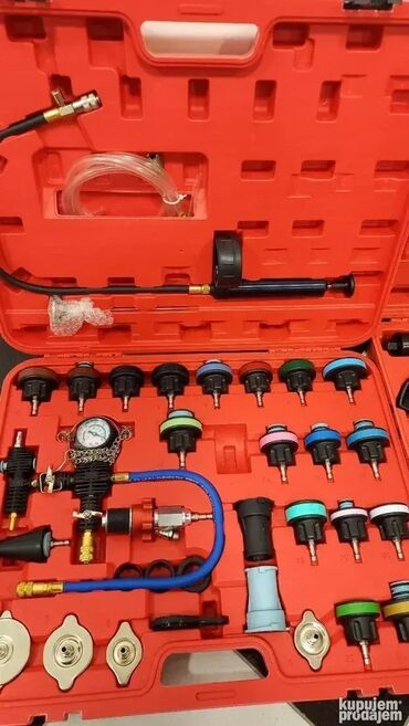 Komplet alatke za proveru sistema hlađenja i hladnjaka u vozilima. Detaljna provera pritiska i curenja sistema. Visok kvalitet izrade za precizne rezultate i dugotrajnu upotrebu. Kupujte od pouzdanih prodavaca! Proverite i ostale naše oglase na KupujemProdajem, gde ćete pronaći sve što vam treba po najpovoljnijim cenama. Uz kupovinu više artikala, ostvarujete popust, a svaki 100-ti kupac dobija proizvod potpuno besplatno! Za više informacija ili porudžbinu, pozovite nas na 065/456-5063. Radno vreme: Svakog dana od 7h do 21h. Robu šaljemo brzom poštom, a plaćanje se vrši pouzećem. Osigurajte se da je vaš sistem hlađenja u savršenom stanju uz naš set alata za proveru hladnjaka!