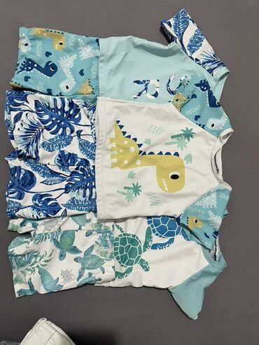 - Rashgaurd majice sa kratkim rukavima i šortsevi za kupanje, sa zabavnim printovima dinosaurusa, kornjača i tropskih listova u nijansama tirkizne, plave, bele i žute. Materijal brzog sušenja, prijatan za kožu; kroj omogućava lako oblačenje i slobodu pokreta. Idealno za zaštitu od sunca i igru u vodi.