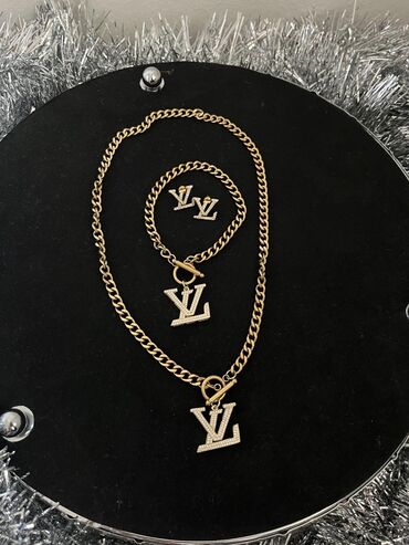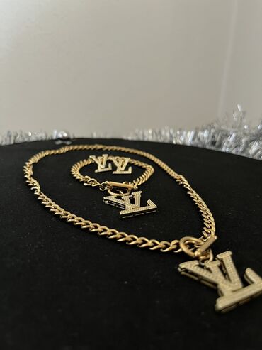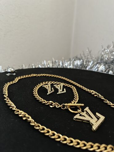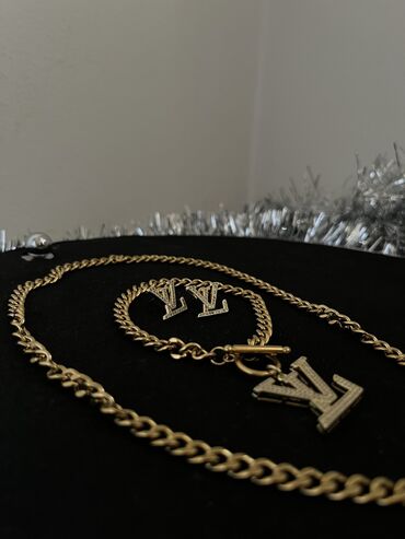 Elegantan modni komplet koji kombinuje masivniji lanac i prepoznatljiv monogram za sofisticiran, urban izgled. Idealno za svakodnevne i večernje kombinacije.