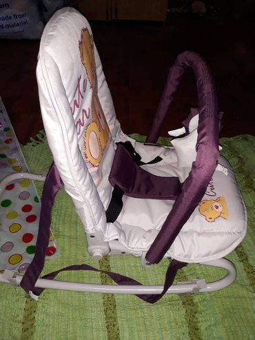 Bebi ležaljka/njihalica sa svetlonarandžastom navlakom i dekoracijama u obliku žutih cvetića. Sedište je mekano, sa sivo postavljenim naslonom i podlogom. Ugrađen je sigurnosni pojas sa kopčom, kao...