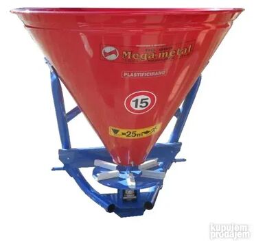 Rasipač Mineralnog Đubriva Opis: Rasipač mineralnog đubriva je dizajniran za ravnomerno rasipanje suvog, mineralnog i granuliranog đubriva. Takođe, može se koristiti za sejanje pšenice i drugih žitarica, kao i za rasipanje soli u zimskim uslovima. Karakteristike: Jednako rasipanje: Omogućava ravnomerno rasipanje po celoj širini, kao i posebno za levu i desnu stranu. Materijal: Može biti plastificiran ili inox. Dimenzije: Rasipač od 300 lit Rasipač od 400 lit Rasipač od 500 lit Primena: Pogodan za različite primene u poljoprivredi i zimskim uslovima.
