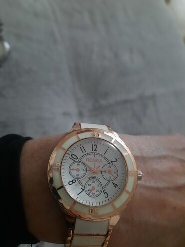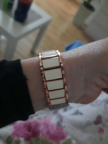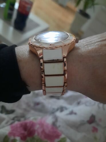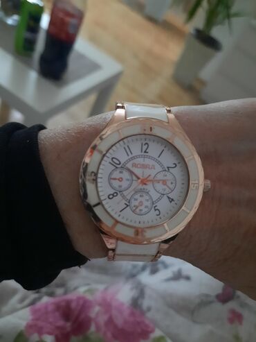 Drugi materijalRosra ženski sat sa narukvicom zlatne boje i belim kamenom. Ekskluzivni,stilski,Novo.