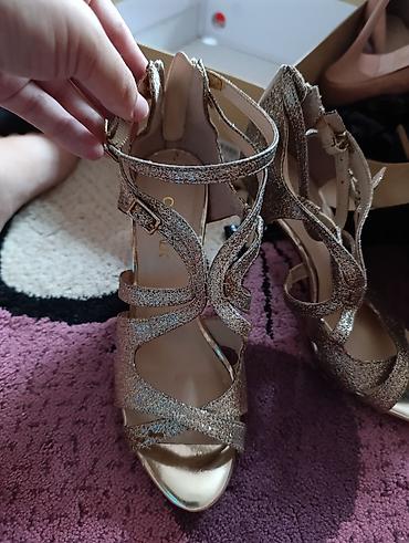 Elegantne ženske cipele i sandale – više modela - Sandale sa blok petom i kaišićem oko zgloba: dostupne u zlatnoj šljokičastoj varijanti i u bež nijansi. Široka stabilna peta i podstavljeni uložak...