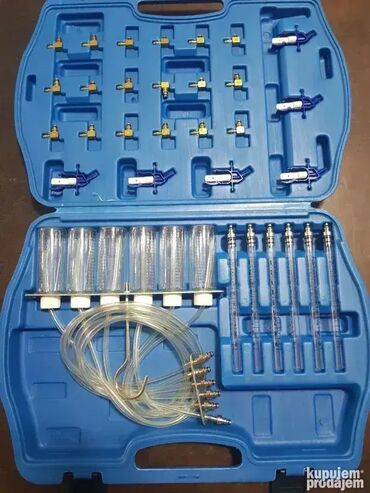 Set Alata za Dizne Specijalni Alat za Ispitivanje Preliva Dizni. Ovaj set alata je dizajniran za brzo i efikasno merenje zapremine goriva u prelivu svake dizne, omogućavajući preciznu dijagnostiku i održavanje vašeg vozila. Karakteristike: Novo u koferu, Specijalno izrađen za ispitivanje preliva dizni. Robu šaljemo brzom poštom, a plaćanje se vrši pouzećem.