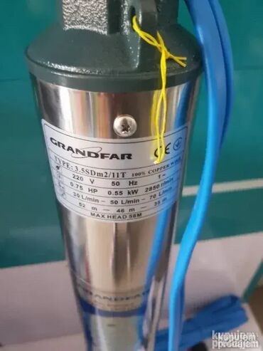 Snaga: 0.37 kWMaksimalna visina: 48 mProtok: 30 L/minPriključak: 1"Cena: 95€ GRANDFAR Pumpa - Model: 3SDm2.5/15