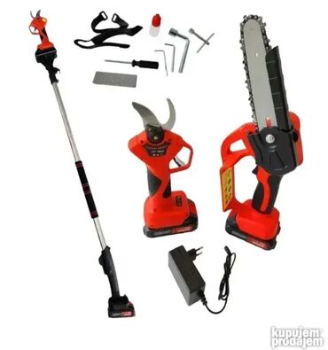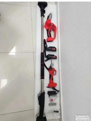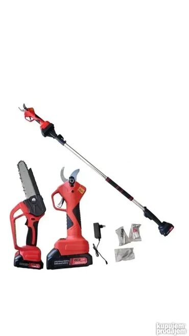 Veoma Kvalitetan i Praktičan Set Aku Makaza i Testere sa Teleskopskim Nastavkom. Ovaj komplet akumulatorskih makaza i testere sa teleskopskim nastavkom idealan je za sve ljubitelje vrtlarstva i profesionalce koji traže praktične alate visokog kvaliteta. Omogućava vam lakše i preciznije obavljanje svih poslova u vrtu ili na imanju. Karakteristike: Teleskopski nastavak: Podesiva dužina od 160 cm do 240 cm omogućava vam lako dostizanje viših grana bez potrebe za merdevinama. Aku makaze: Maksimalno otvaranje noževa 30 mm, savršene za precizno obrezivanje grana i žbunja. Otvaranje u četiri nivoa: Pokazivač stepena otvaranja omogućava vam kontrolu i prilagođavanje makaza za različite debljine grana. Baterija: 21V / 2000mAh, dovoljna za dugotrajan rad bez potrebe za čestim punjenjem. Komplet Uključuje: Teleskop: Omogućava lako obrezivanje i rezanje teško dostupnih grana. Makaze: Idealne za precizno obrezivanje biljaka. Testera: Pogodna za sečenje debljih grana. 2 Baterije: Osiguravaju neprekidan rad i lako menjanje tokom posla. Punjač: Brzo punjenje baterija kako bi alati uvek bili spremni za upotrebu. Kamen za oštrenje: Održava alate oštrim i spremnim za precizne rezove. Ključevi: Za jednostavno održavanje i podešavanje alata. Prednosti: Jednostavnost upotrebe: Podesivi teleskop omogućava lakši rad i manje zamaranja, savršen za rad na visini. Visok kvalitet: Robusni materijali i odlična izrada garantuju dug vek trajanja. Svestranost: Kombinacija makaza i testere pruža sve što je potrebno za kompletnu negu biljaka i drveća. Idealno za: Profesionalne baštovane, voćare i vinogradareLjubitelje vrtlarstva i hobisteOdržavanje vrtova, voćnjaka i okućnicaOvaj set aku makaza i testere sa teleskopskim nastavkom je savršen alat za sve koji žele brzo, jednostavno i bezbedno obrezivanje i sečenje grana. Praktičan i lagan, sa maksimalnom efikasnošću u svakom poslu!
