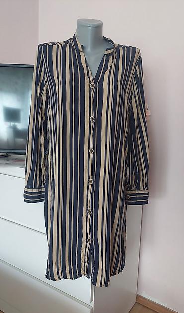 - Stil: može se nositi kao košulja preko pantalona/farmerki ili kao košulja-haljina; prikladno za svakodnevne i poslovno-ležerne kombinacije
