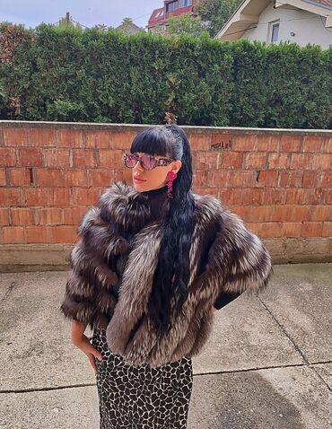 - Materijal: bujno, višetonirano krzno u nijansama smeđe, srebrno-sive i crne.
