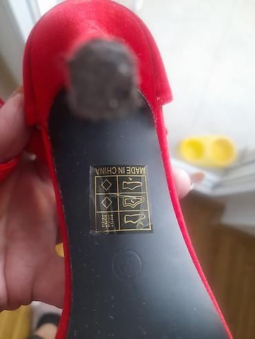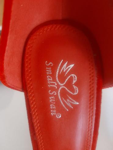 - Materijal: gornjište i potpetica presvučeni baršunastim/velur materijalom; glatka postava i uložak u crvenoj boji