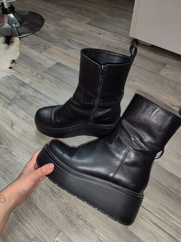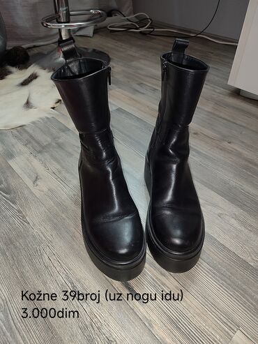 Kožne ženske čizme – broj 39 - Materijal: prava koža, glatka završnica - Boja: crna - Visoka platforma/deblji đon sa grubim profilom za stabilnost - Zatvaranje: bočni rajsferšlus za lako obuvanje ...
