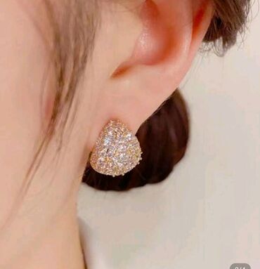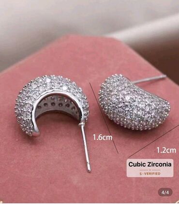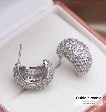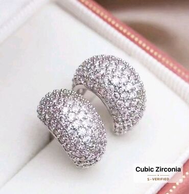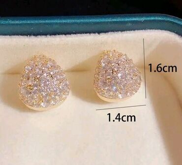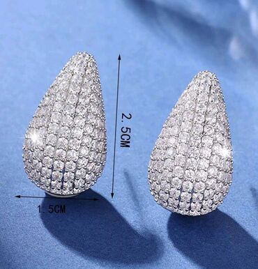 - Model: sitne naušnice u obliku suze/kupole, bogato popločane blistavim kubnim cirkonima (Cubic Zirconia).