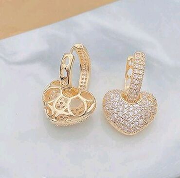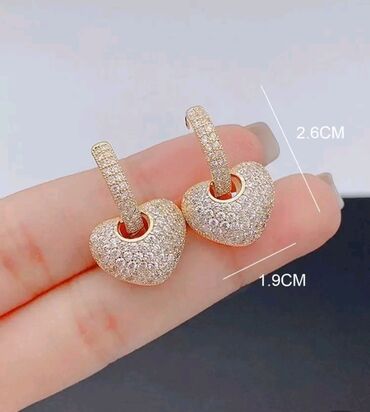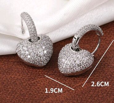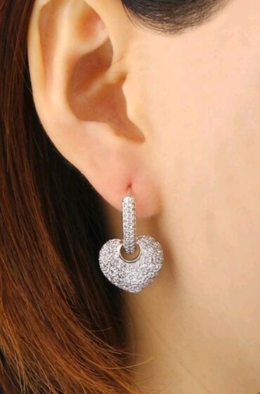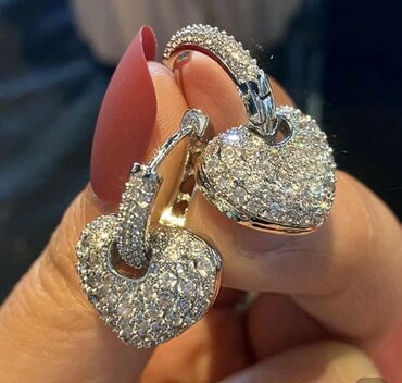 Naušnice sa priveskom u obliku srca, raskošno ukrašene sitnim svetlucavim kamenčićima (pave).