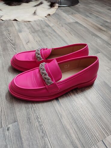SeastarRužičaste mokasine (fuchsia) sa dekorativnim metalnim pletenim lancem na gornjem delu. Klasičan penny-loafer kroj sa zaobljenim vrhom, niskom petom i diskretnim štepovima duž ivica. Unutrašnjost u bež tonu, mekana postava za udobnost tokom celog dana. Model 7655, označeno „FUSHIA“. Veličina: 39. Cena: 1.500 din.