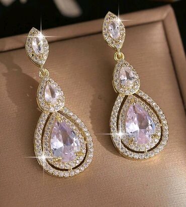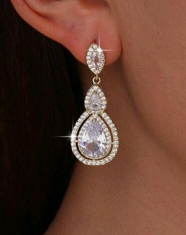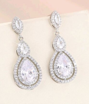 - Kamenje: kubni cirkoni – fasetirani, visoke transparentnosti i sjaja; centralni kamen u kapljici + okviri sa sitnim cirkonima za dodatnu blistavost.