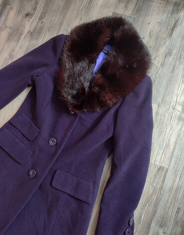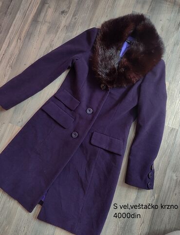 Elegantni ženski kaput sa kragnom od veštačkog krzna. - Boja: tamnoljubičasta - Veličina: S (naglašeno na fotografiji) - Materijal: topla vunena/filc tkanina (postava u ljubičastoj nijansi) - Krag...