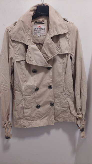 Bež dvoredni mantil (trench) klasičnog kroja. - Boja: pesak/bež - Kopčanje: dvoredno sa crnim dugmadima - Kragna sa reverima, epoletama na ramenima i štitnikom za vetar na leđima - Pojas u struku ...