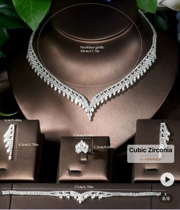 - Materijal: legura presvučena 18K belim zlatom; ukrasi od visokosjajnih kubnih cirkona (Cubic Zirconia).