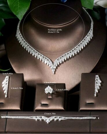 - Komplet sadrži: ogrlicu, par minđuša i prsten.