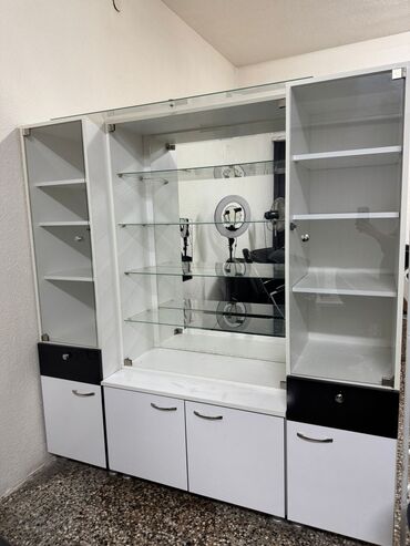 - Centralna izložbena vitrina sa staklenim policama i staklenim vratima, idealna za prezentaciju kozmetike i proizvoda