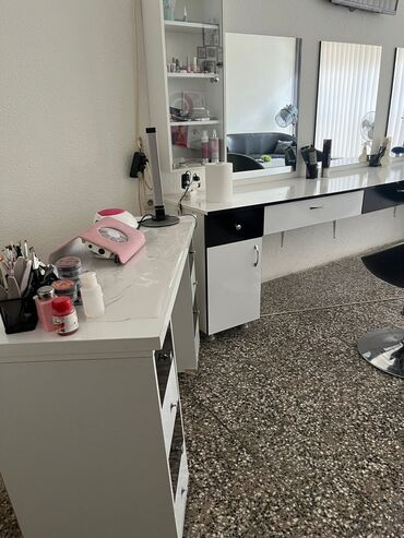 Set frizerskog/kozmetičkog salona – radni pultovi, ogledala i zidne police