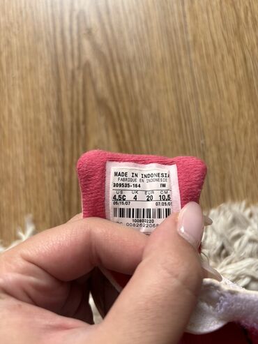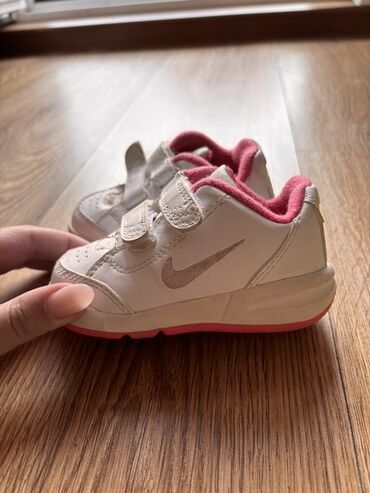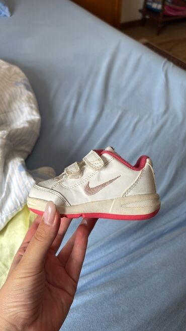 O trošku kupcaDečije patike Nike, veličina 20 (EU) / 4.5C (US) / 4 (UK), dužina uloška 10.5 cm. Model sa dvostrukim čičak kaiševima za lako obuvanje. Spoljašnjost u svetloj krem/bež boji sa ružičastim Nike logoom, ružičasta postava od mekog materijala i ružičasti đon. Deblji, amortizujući srednji đon i gumeni donji đon za dobro prianjanje. Oznaka modela: 30. Proizvedeno u Indoneziji. Idealne za prve korake i svakodnevne šetnje.