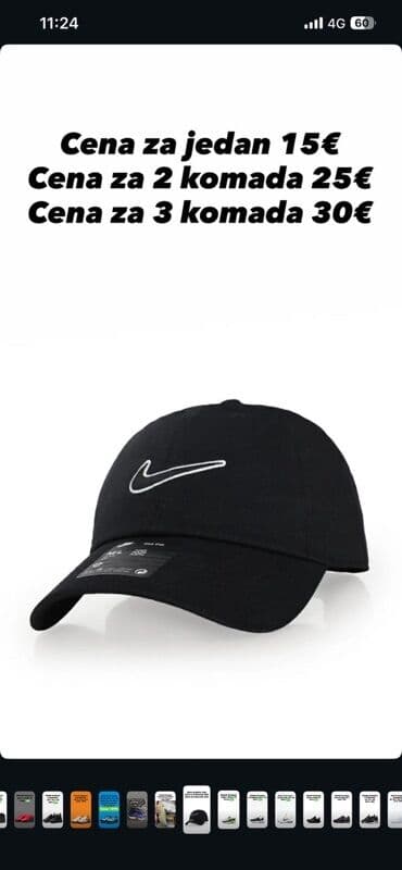 Crna kačket kapa sa zakrivljenim šiltom i izvezenim belim Swoosh znakom napred. Klasičan „dad cap“ kroj, podesiva traka pozadi za prilagođavanje obimu glave. Materijal: lagana tkanina pogodna za sv...+381 64 40500xx