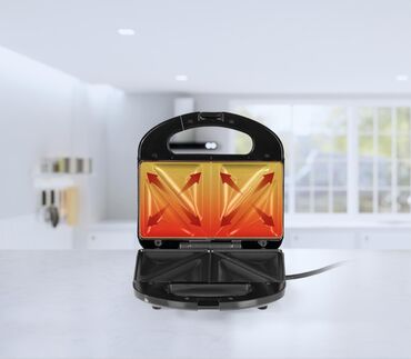 Crni aparat za sendviče, kompaktan i jednostavan za skladištenje, idealan za brzu pripremu do 2 sendviča istovremeno. Poseduje neljepljivu površinu za lako čišćenje i ugrađene grejne ploče koje omogućavaju ravnomerno tostiranje. Praktičan izbor za brze obroke u domaćinstvu.