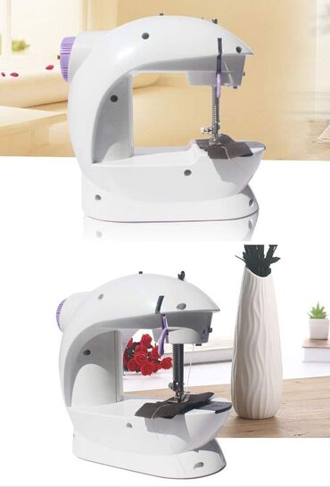 Mašina za šivenje mini Sewing Austrija koja radi na baterije ili na struju preko adaptera koji se nalazi u kompletu. Mašina sadrži papučicu za nožno pokretanje i pet čunaka sa koncima. Ima dve brzine i pogodna je za sve vrste šivenja i vrlo je praktična za putovanja.