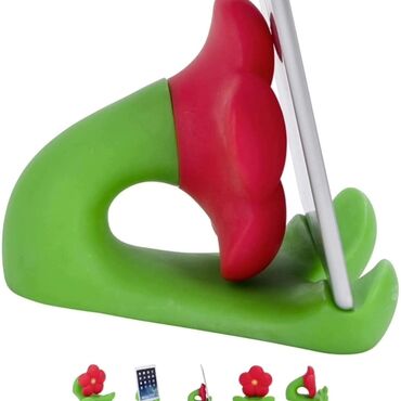 Držač za tablet ili telefon u obliku cveta, idealan za postavljanje uređaja u vertikalnom ili horizontalnom položaju. Dizajniran je tako da osigurava stabilnost i sprečava klizanje. Vesele boje crvene i zelene čine ga privlačnim dodatkom za radni sto ili noćni ormarić. Kompaktan i lagan, lako se prenosi i pogodan je za upotrebu kod kuće, u kancelariji ili na putovanjima. Funkcionalan i dekorativan, omogućava udobno gledanje video zapisa, čitanje ili video pozive bez držanja uređaja u rukama.