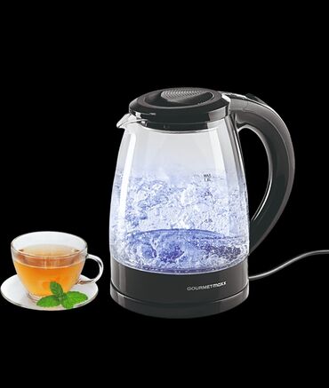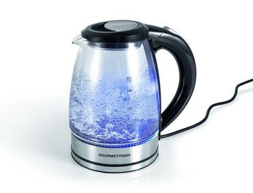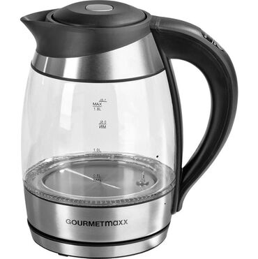 Stakleno električno kuvalo za vodu marke Gourmetmaxx, idealno za brzo zagrevanje vode za čajeve, kafu ili instant napitke. Kuvalo ima prozirno telo od stakla, što omogućava lako praćenje nivoa vode i procesa ključanja. Opremljeno je plavim LED osvetljenjem koje se aktivira tokom rada, dajući elegantan vizuelni efekat. Na kuvalu su jasno vidljive oznake za minimalni i maksimalni nivo vode, sa kapacitetom do 1,7 litara, što ga čini praktičnim za svakodnevnu upotrebu u domaćinstvu.
