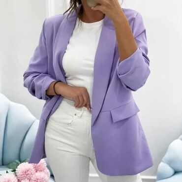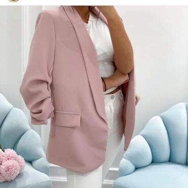 Ženski oversized blejzer sa kariranim (Prince of Wales) dezenom u sivoj nijansi. Model ravnog kroja, bez kopčanja, sa rever-kragnom i spuštenim ramenima. Dužina ispod kukova, 3/4 do pune dužine ruk...