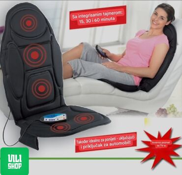 Električna prostirka za masažu, brenda VITALmaxx, dizajnirana za relaksaciju i ublažavanje napetosti. Prostirka je opremljena integrisanim tajmerom sa opcijama podešavanja na 15, 30 i 60 minuta, omogućavajući korisniku da prilagodi trajanje masaže svojim potrebama. Uključuje funkciju grejanja, što doprinosi dubljoj relaksaciji mišića i poboljšava iskustvo masaže. Sa priloženim adapterom za automobil, idealna je za korišćenje tokom putovanja ili u vozilu, pružajući komfor i opuštanje gde god da se nalazite. Ova masažna prostirka je pogodna za upotrebu u različitim okruženjima, uključujući dom, kancelariju ili automobil, nudeći praktično rešenje za svakodnevno opuštanje. - Naziv Brenda: VITALmaxx - Funkcija Masaže: Da - Funkcija Grejanja: Da - Integrisani Tajmer: 15, 30, 60 minuta - Prilagodljivost Upotrebe: Automobilski priključak - Tip Masaže: Vibraciona - Kontrole: Daljinski upravljač - Ergonomski Dizajn: Prilagođava se telu - Prenosivost: Visoka - Materijal: Tekstil, pena - Boja: Crna - Upotreba: Višenamenska (kuća, kancelarija, auto) - Lokacije Masaže: Leđa, ramena, butine - Nivoi Intenziteta: Podesivi - Jednostavnost Korišćenja: Visoka - Napajanje: Mrežno/Auto adapter - Dimenzije: Prilagodljive sedištu - Održavanje: Lako čišćenje - Sigurnosni Standardi: Usklađeno sa GS - Funkcija Automatskog Isključivanja: Da