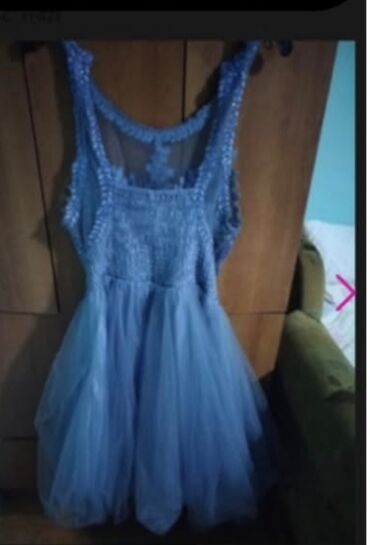 Haljina prelepa, jednom sam je nosila za malu maturu, veličina neka L, prelepa plava boja, ima i traka koja ide oko struka, ili na ramena, kako vi odlučite..