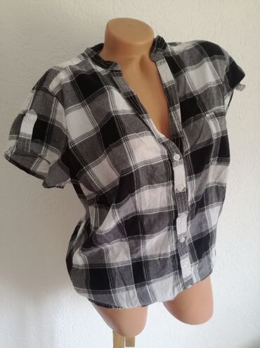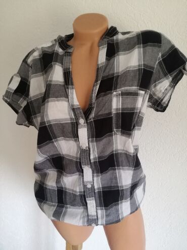 ZARA ženska košulja, veličina L. Model sa klasičnom kragnom i dugmadima spreda, dugi rukavi sa manžetnama na dugme. Materijal lepršav i satenski, prijatan na koži. Boja praškasto roze sa finim prin...