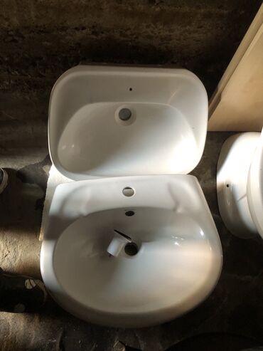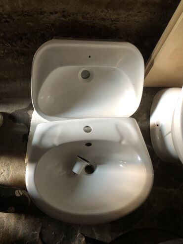 - Set uključuje: podni WC šolju sa daskom i montažnim elementima, dve umivaonike različitog oblika (pravougaoni za ugradnju na ploču i ovalni zidni/poduporni).