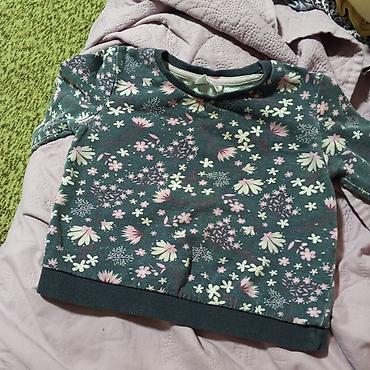 - Dukser/duks kratkih rukava u tamnozelenoj nijansi sa celoprekrivajućim cvetnim printom u pastelnim bojama; elastični rebrasti ranfla na struku i oko vrata.