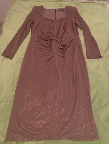 2) Satenasta midi haljina u nijansi taupe sa blagim sjajem