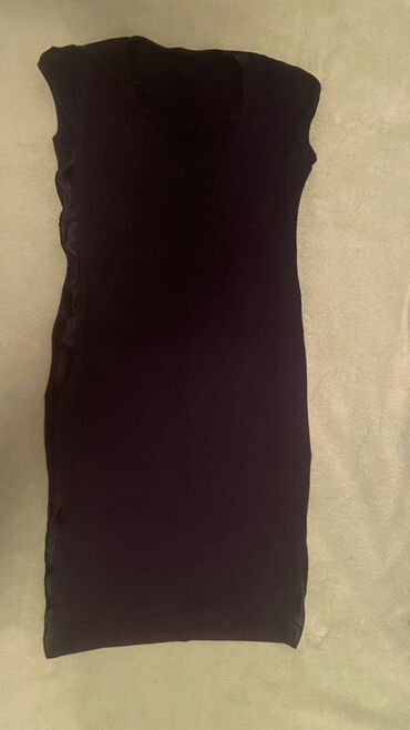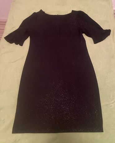 3) Crna haljina iznad kolena sa kratkim volan-rukavima i diskretnim svetlucavim efektom po celoj površini. Okrugao izrez, leđa sa zatvaranjem rajsferšlusom.