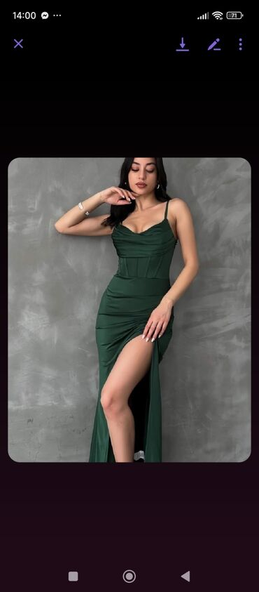 Elegantna košulja-haljina u maslinasto-sivoj nijansi. - Materijal: glatka, svilenkasta tkanina sa blagim sjajem. - Kroj: struk naglašen širokim pojasom/panelom, ravna suknja midi dužine. - Gornj...