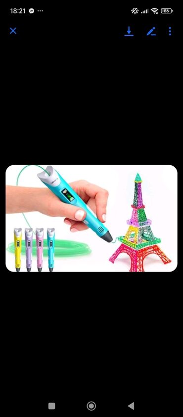 Napravi svoju jedinstvenu 3D kreaciju pomoću 3D olovke Pomoću ove fenomenalne olovke možeš napraviti 3D oblike iz tvoje mašte Potrebna je volja, mašta i naravno 3D olovka Možete crtati u vazduhu, praviti razne oblike i kasniji ih spajati Fenomenalan proizvod za vaše mališane.